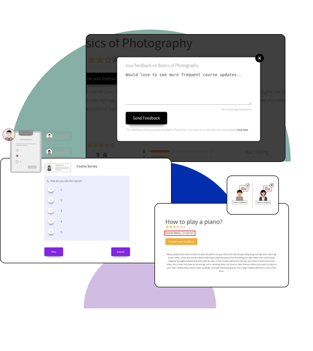 Get genuine feedback from students and tweak your course accordingly. You can customize the feedback template, send auto-feedback emails and use feedback forms for that added advantage.